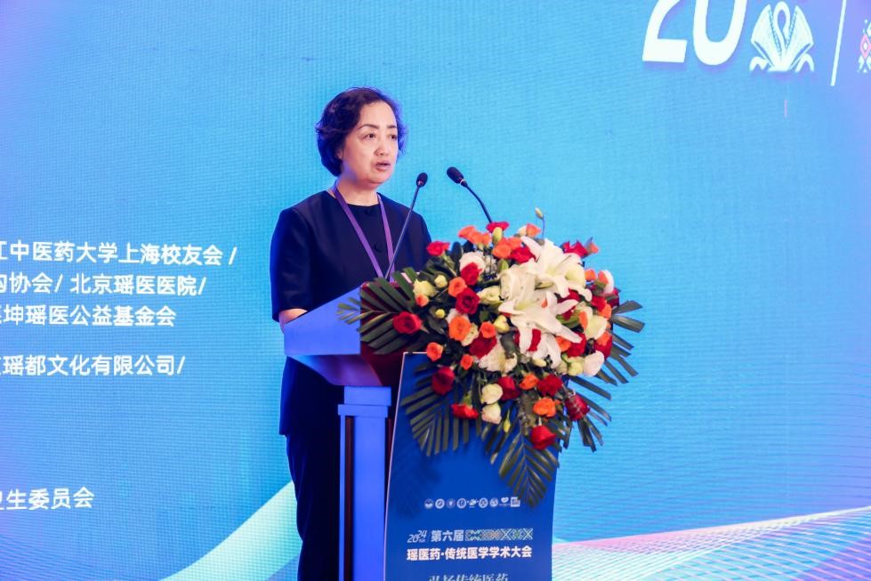 民建中央人口医药卫生委员会副主任、国际防癌长寿联盟主席、中国民族卫生协会副会长、中国民族医药学会肿瘤分会副会长、覃氏瑶医第十三代掌门人、北京瑶医医院院长覃迅云教授在致辞中首先对莅临第六届国际瑶医药传统医学学术大会暨上海德坤瑶医建院二十周年庆的领导、嘉宾表示欢迎。覃迅云教授指出,二十周年是一个里程碑,更是一个新的起点。在未来的发展道路上,要继续秉承“传承瑶医药文化,造福人类健康”的宗旨,不断创新发展,努力提升德坤瑶医医院的综合实力与核心竞争力,为大众健康服务。