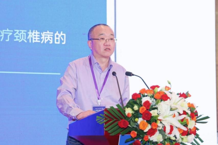 石氏伤科传承人、民盟盟员、主任医师梅立鹤进行《基于石氏伤科理论治疗颈椎病的经验分享》主题演讲