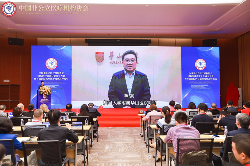 复旦大学附属华山医院毛颖院长发来视频致辞,他在致辞中表示,目前,中国的医疗旅游已发展成旅游和健康服务为一体的新兴产业,并不断催生着大健康的新业态和新模式。协会国际医疗旅游分会的成立,是对国家战略、百姓要求的积极响应和有效承接。在通往健康中国的道路上,基本医疗和国际医疗,一个都不能少。特别是国际医疗旅游整体升级,也反哺着基本医疗的高质量发展,希望依托中国非公立医疗机构协会大平台,凝聚共识、守望相助,为国际医疗旅游事业创造辉煌,为健康中国注入丰富内涵!