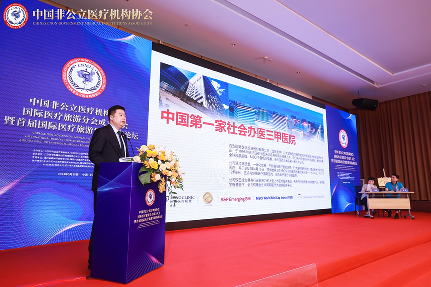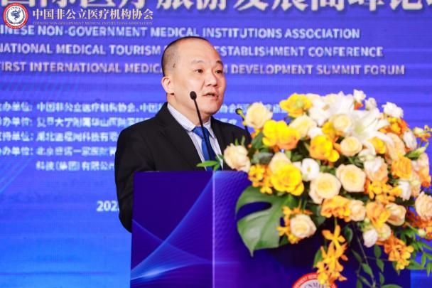 丁震副总裁作《坚持高质量发展,构建国际医疗旅游平台》的专题演讲。