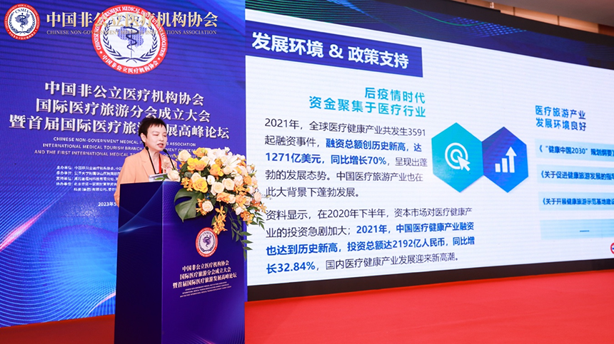 顾静文教授发表题为《对标国际医疗旅游高质量发展、推进规范管理系统建设》的主旨演讲。