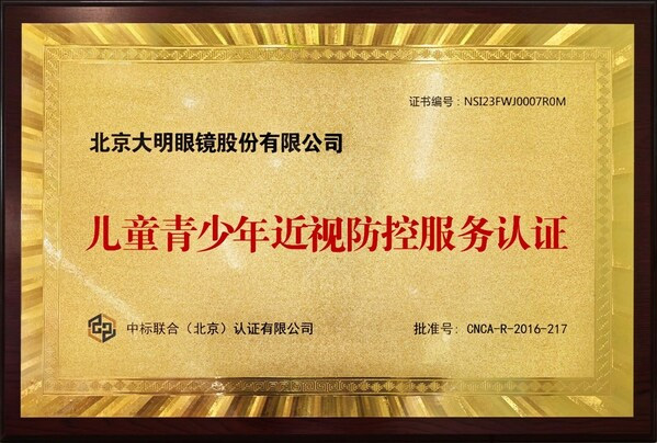 为了做好儿童青少年近视防控工作,北京大明眼镜于2019年成立了儿童青少年近视防控课题小组,专项研究儿童青少年近视防控相关技术课题,制定了全连锁所有门店统一的儿童青少年近视防控验配流程。2021年,该课题小组升级为"儿童青少年视力健康管理工作室", 2023年经北京市总工会认定成为市级职工创新工作室,并取得了儿童青少年近视防控服务认证资质。经过多年来的招募考核,工作室成员现已增加至四十多名,均拥有国家一级或二级验光师资质,遍布全连锁各个门店。