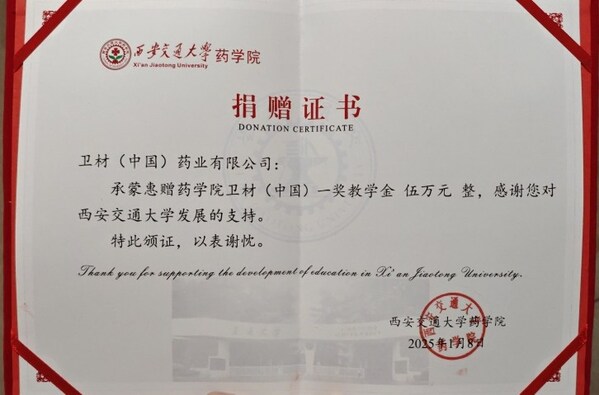 自2023年起,卫材中国将连续5年在西安交通大学药学院设立"卫材中国奖教学金",每年捐赠5万元,西安交通大学药学院"卫材中国奖教学金"将惠及65名优秀的西安交大教师和学生。