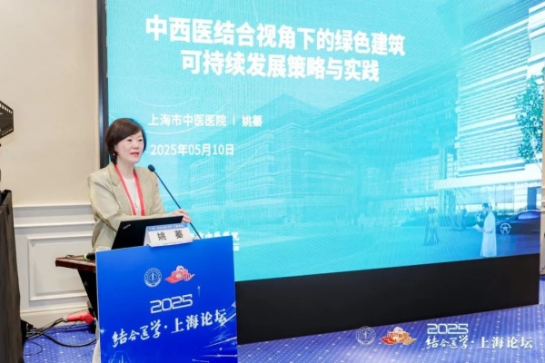 姚蓁副院长(上海中医药大学附属市中医医院)从中西医结合视角出发,探讨了绿色建筑在医疗领域的实践策略,强调可持续发展的重要性。