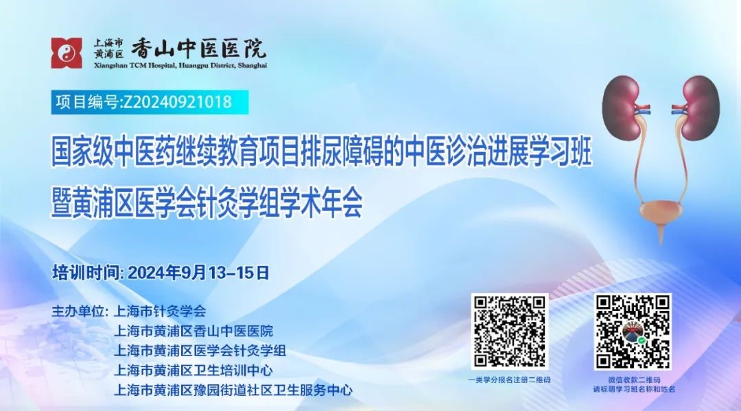为提升医疗机构专业技术人员的针灸素养,推广学习排尿障碍及盆底功能相关疾病的中医诊断治疗新进展,拓展相关慢病管理的诊疗思路,促进中医针灸在社区慢病管理的应用和发展,2024年度国家级中医药继续教育项目《排尿障碍的中医诊治进展学习班》(编号:Z20240921018)暨黄浦区医学会针灸学组学术年会,现定于2024年9月13日-15日在上海市黄浦区举办。