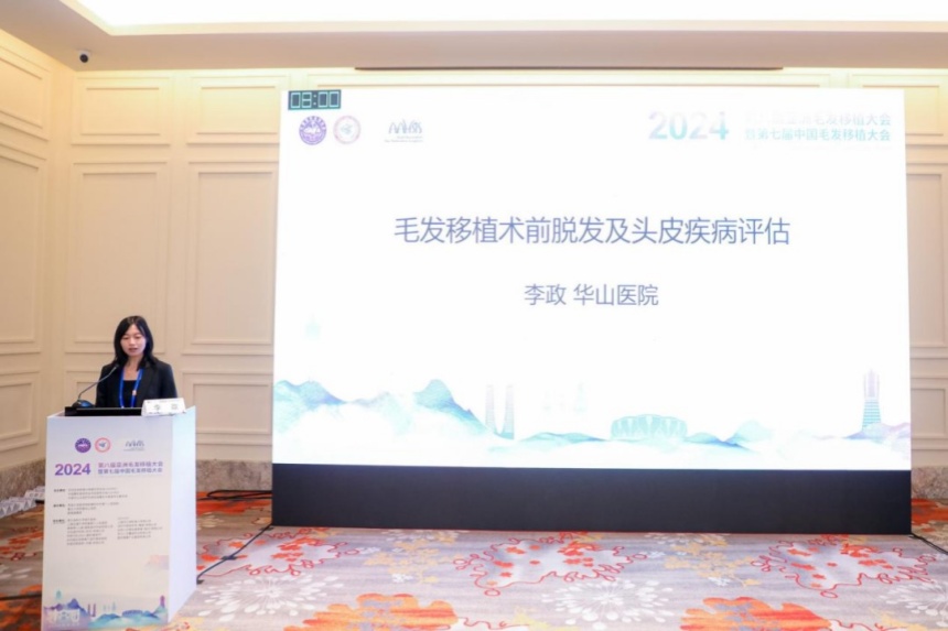 李政医师于青年论坛进行了题为“毛发移植术前脱发与头皮疾病评估”的报告,指出毛发移植术前明确诊断脱发疾病种类及评估头皮健康状态的重要性,详细说明了术前评估的主要内容,分享了临床上容易遗漏的可与雄激素性秃发合并的脱发疾病,如合并急性休止期脱发、隐匿性斑秃、模式性分布的纤维化性秃发。