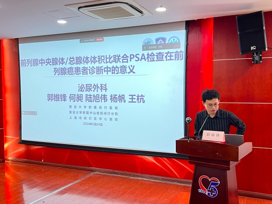 郭锥锋教授以『前列腺中央腺体/总腺体体积比联合PSA检查PSA4-20ng/ml前列腺癌患者诊断中的意义』为主题向大家介绍了前列腺癌诊断中的新方法。