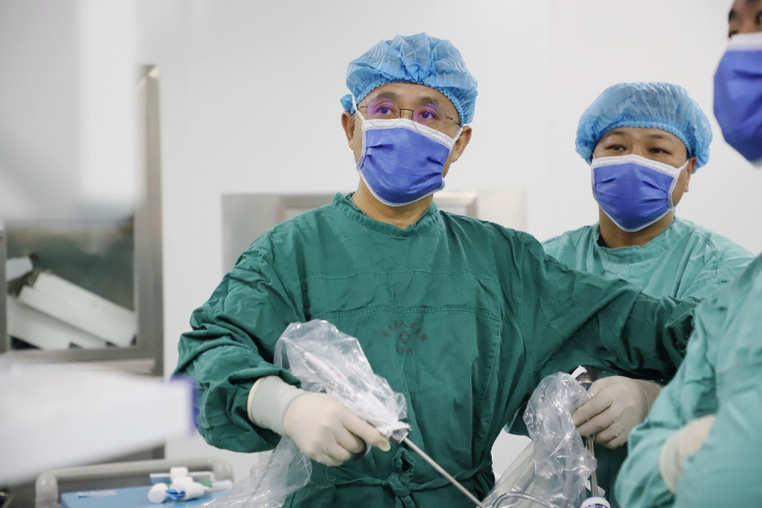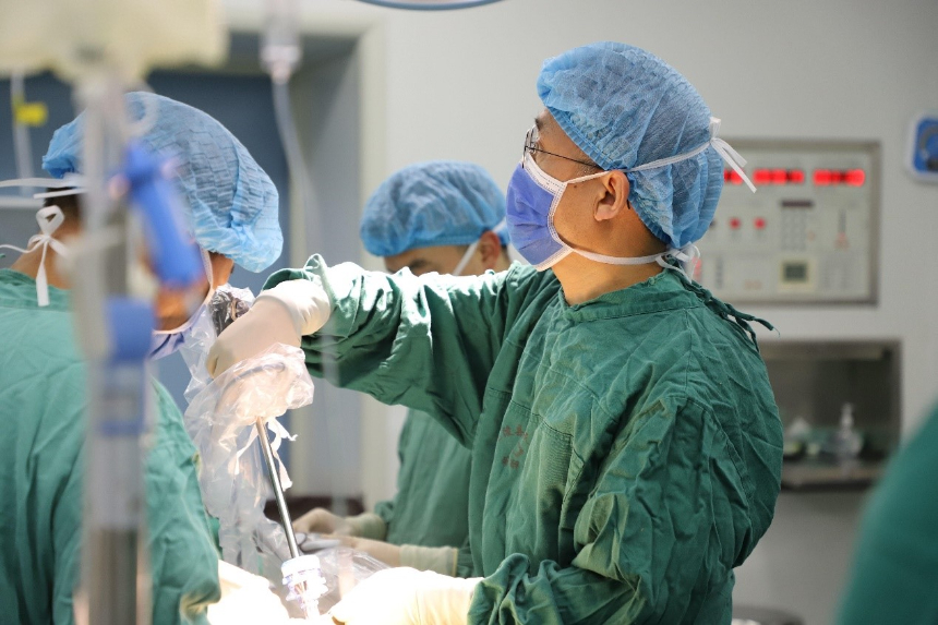 “施教授手术操作精细且娴熟,对变异血管处理及解剖层次思路清晰,手术高质高效,出血量极少,通过术中教学,让我们对泌尿系肿瘤的手术解剖、术前准备和术后护理都有了更深入的了解,接触到了泌尿外科学高精尖的诊疗技术。”施教授的带教学生尹必成说。