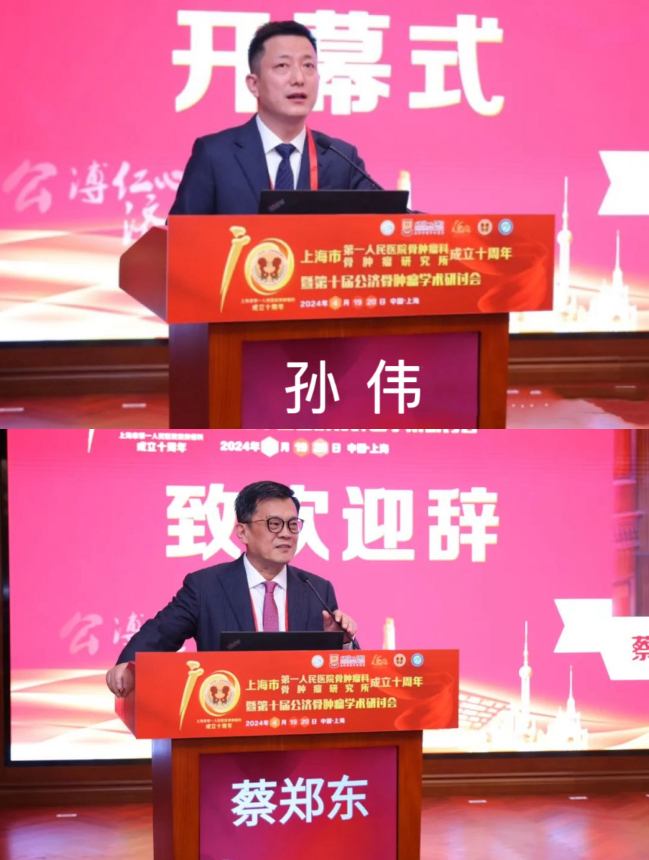开幕式由上海市第一人民医院骨肿瘤科主任孙伟教授主持,上海市骨肿瘤研究所所长、上海市第一人民医院骨科临床医学中心学科带头人蔡郑东教授致欢迎辞。他回顾了骨肿瘤团队三十余载的艰辛历程,从长海医院起步成长,到上海十院传承创业,再到上海市一发展壮大,每一步都凝聚着团队的智慧和汗水,特别是在市一的十年间,团队不断创新开拓,坚持奋斗,取得了显著的成绩,未来我们将以十周年为新起点,继续书写骨肿瘤科发展的新华章。