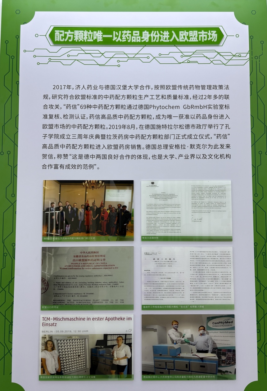 药信高品质中药配方颗粒获国家重点新产品、安徽省工业精品等荣誉,公司的中药配方颗粒顺利通过欧盟的QP检查,获得《出口欧盟原料药证明》并实现对德国等欧盟地区的出口,是配方颗粒唯一以药品的身份进入了欧盟市场。