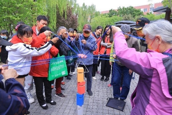 2023年4月,“倾听者”陪伴活动在北京西城区白云公园中心广场举办健身游戏比赛