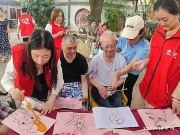 2023年6月,大家保险志愿者在四川成都九里提社区养老服务站开展“倾听者”陪伴活动