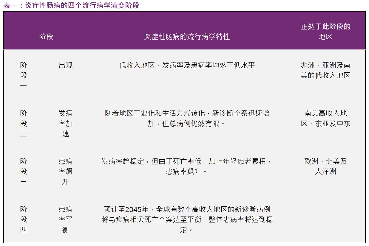 早在19世纪,炎症性肠病于较早工业化的西方地区如北美、欧洲及大洋洲开始流行,到21世纪初逐渐在亚洲、南美及非洲等新兴工业地区出现。随着炎症性肠病的新增发病个案在新兴国家持续上升,加上发达国家的患病人数不断增长,炎症性肠病对全球公共卫生造成威胁。