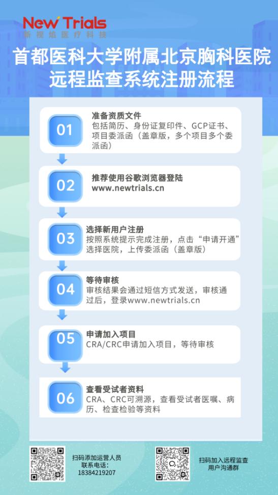 北京胸科医院近3年来深入参与行业DCT调研与实践工作,同时依托在研临床试验开展了电子知情、电子支付及智能招募等DCT场景的落地,不断以创新理念和工具赋能临床试验质效的提升。此次远程监查系统的上线是该院推进DCT全面部署进程中的又一重要里程碑,标志着该院临床试验机构在数智化道路上迈上了一个新台阶,机构将以此为契机,继续与临床试验各方携手,进一步拓展临床试验数智化场景,能更高效、精准地服务于临床试验,提升临床试验及医学科学发展的效率和质量,推动临床试验的创新发展。