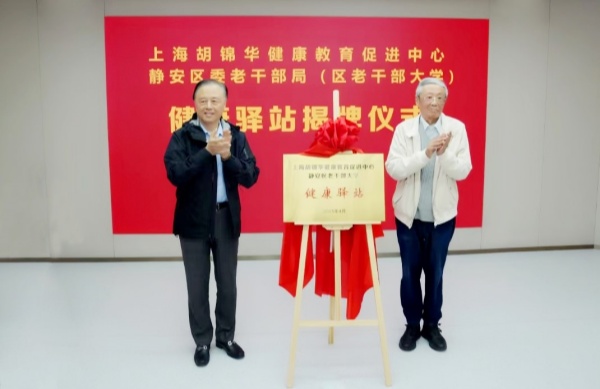 上午9:30,在近50名静安区局级离退休老干部学员的见证下,上海市人民政府原参事胡锦华与静安区原政协主席陈永弟共同为静安区老干部活动中心“健康驿站”揭牌。“这个健康驿站,将成为静安区离退休老年人健康知识的‘充电站’、疾病预防的‘预警台’。”