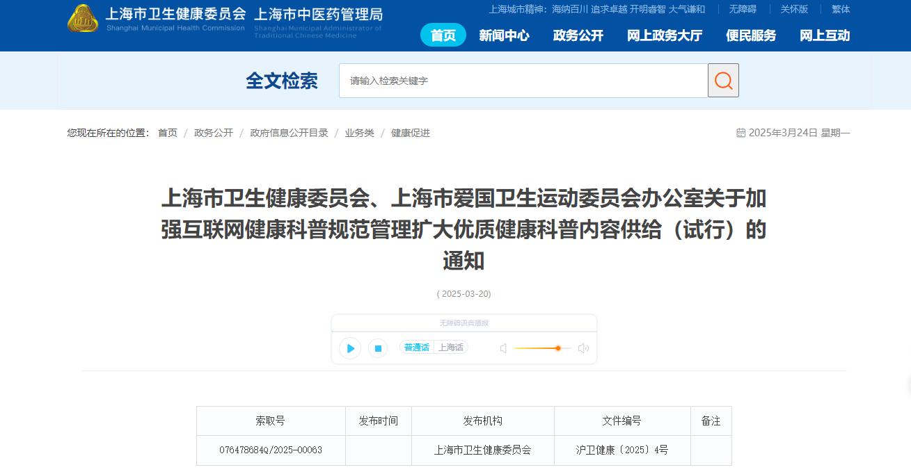 健康科普是推进健康中国、健康上海建设的有力举措,是指导公众形成健康观念,掌握健康技能,采取健康行为,提高健康素养的关键途径。为规范本市各级医疗卫生机构及其工作人员互联网健康科普行为,建立完善健康科普全链条监管工作机制,根据《中华人民共和国科学技术普及法》《中华人民共和国广告法》《医疗机构工作人员廉洁从业九项准则》《关于建立健全全媒体健康科普知识发布和传播机制的指导意见》和《上海市科学技术普及条例》《上海市爱国卫生与健康促进条例》等规定,市卫生健康委研究制定了加强本市互联网健康科普规范管理、扩大优质健康科普内容供给的相关制度规范。请各单位结合实际,认真贯彻执行。具体要求如下: