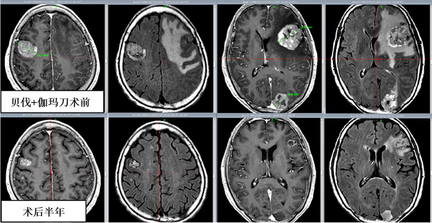 2、伽玛刀联合贝伐珠单抗治疗多发巨大脑转移瘤。经5年使用观察,该方法在提高病灶局控率、延长患者生存期的同时快速、显著降低了神经功能的损害,提高患者生存质量,为多发巨大脑转移瘤临床治疗的新思路。2019年神经外科分会肿瘤学组会议上我们分享此经验。